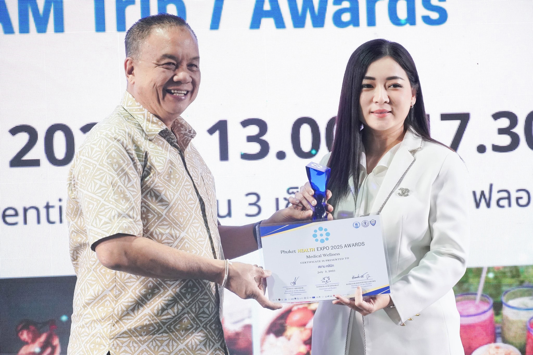 On this occasion, Siam Clinic Phuket received the Phuket Health Expo 2025 Award in the Wellness Clinic category, which is an award given to organizations that play a role in promoting health services, emphasizing holistic and sustainable health promotion, in line with the development guidelines for health tourism cities in Phuket Province.