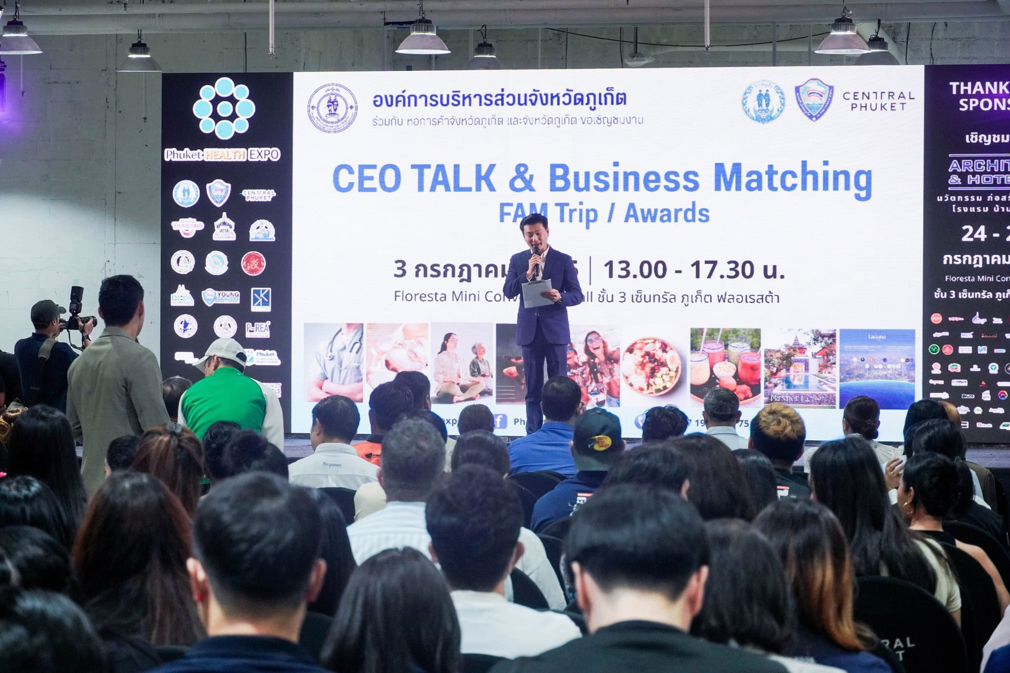 July 3, 2025, Dr. Pimpakan Tantithamwong joined the CEO TALK & Business Matching FAM Trip / Awards seminar at the “Phuket Health Expo 2025”, chaired by Mr. Rewat Areerob, President of the Phuket Provincial Administrative Organization, and Mr. Kongsak Khupongsakorn, President of the Phuket Chamber of Commerce, gave a welcome speech to attendees at the Mini Convention Hall, Central Festival Phuket.