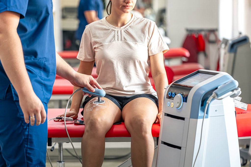 รักษาโดยใช้การสั่นและถ่ายเทพลังงานจากหัวเครื่องไปยังบริเวณที่มีปัญหา โดย shockwave สามารถใช้ในการป้องกันการอักเสบทางระบบประสาท,เพิ่มอัตราการไหลเวียนของโลหิตและกระตุ้นให้เกิดการซ่อมแซมส่วนที่บาดเจ็บ