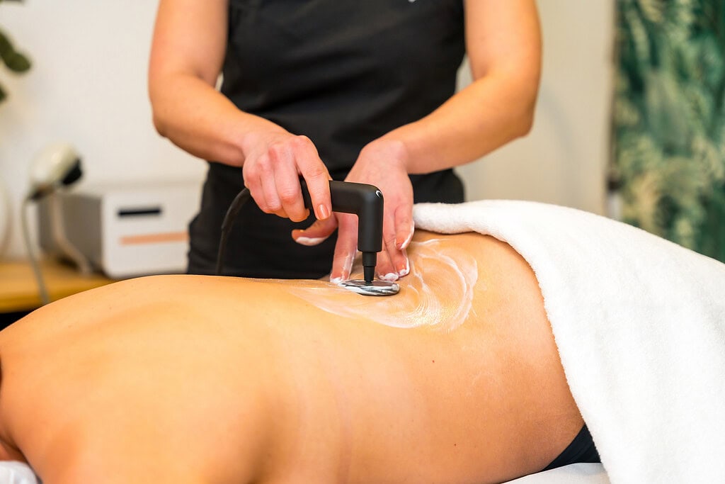 รักษาโดยใช้การสั่นและถ่ายเทพลังงานจากหัวเครื่องไปยังบริเวณที่มีปัญหา โดย shockwave สามารถใช้ในการป้องกันการอักเสบทางระบบประสาท,เพิ่มอัตราการไหลเวียนของโลหิตและกระตุ้นให้เกิดการซ่อมแซมส่วนที่บาดเจ็บ